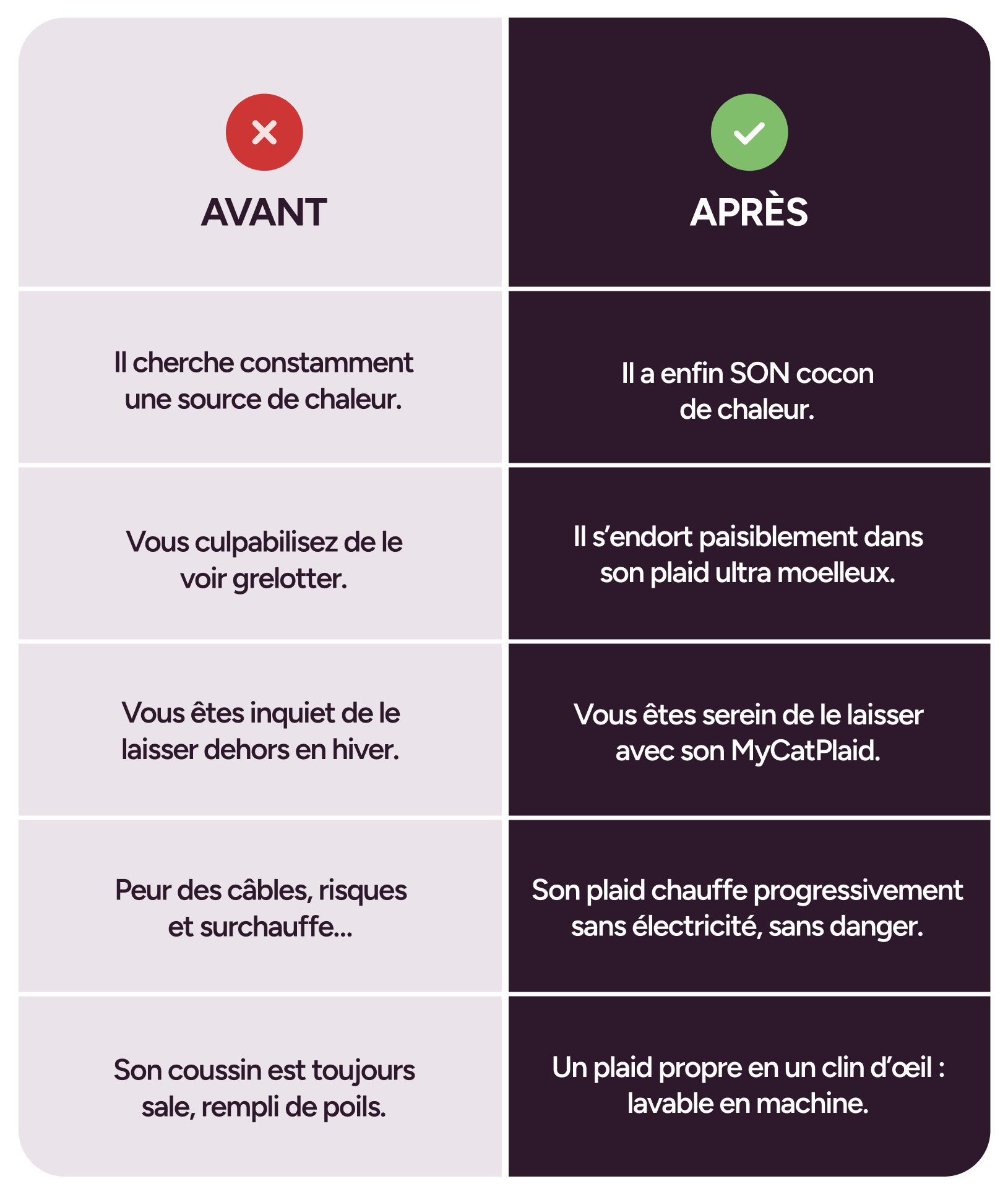 Diffuse une chaleur auto-régulée : douce et progressive, inspirée du principe de thermorégulation des chats.